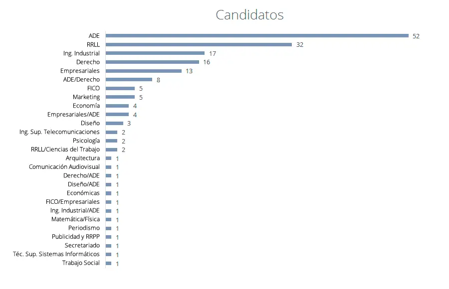 Durante todo el día estuvimos recibiendo candidatos. Casi 200 personas, entre estudiantes de Ingeniería, ADE o Derecho, nos dejaron su curriculum impreso y otros tantos lo enviaron a través de nuestra página web.